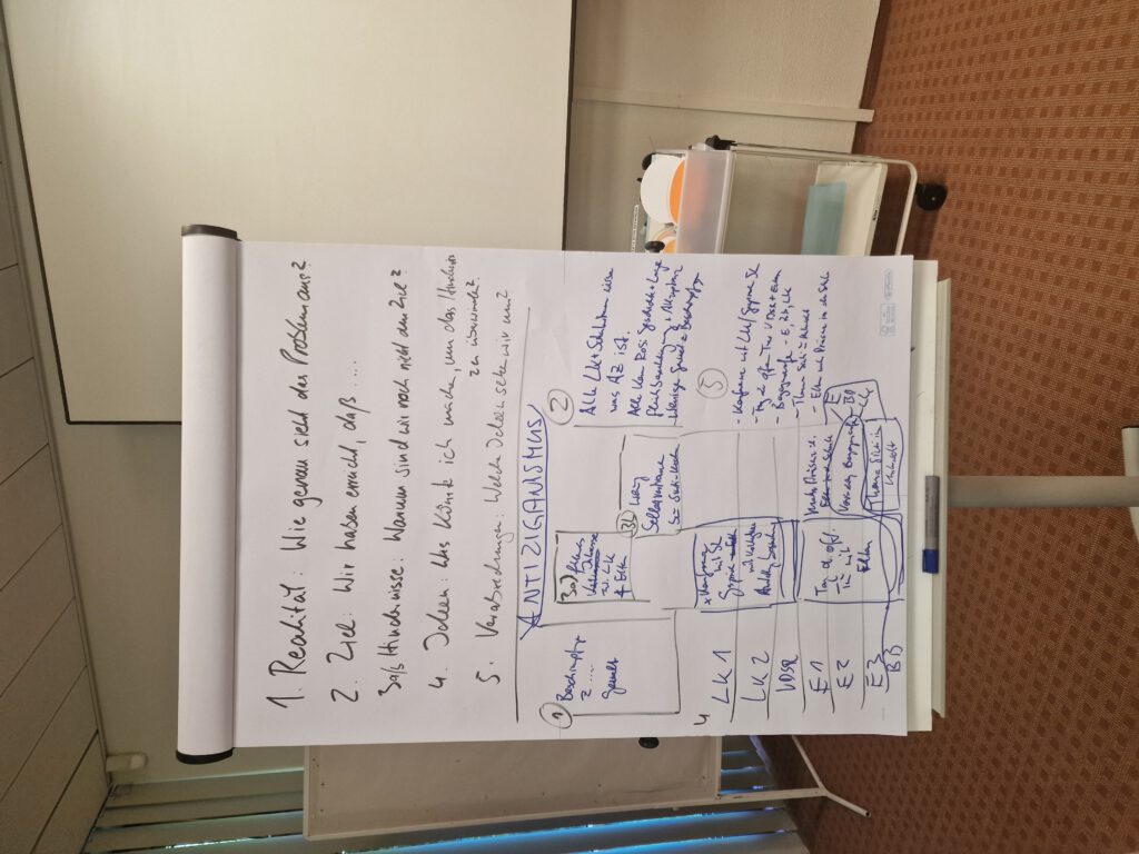 Reale Sitzung zum Ausprobieren der Planungsmethode mit Lehrkräften.