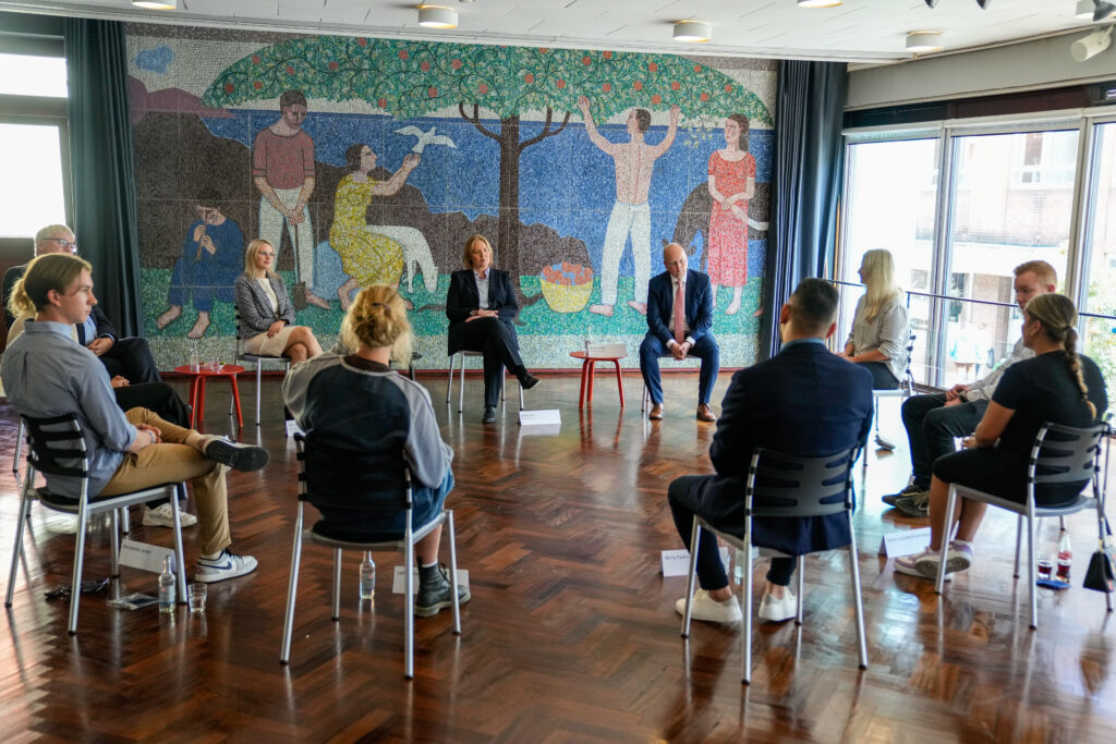 Bundestagspräsidentin Bas besucht auf Einladung von Stefan Seidler die nationalen Minderheiten in Flensburg am 30.08.2022. Foto: Martin Ziemer