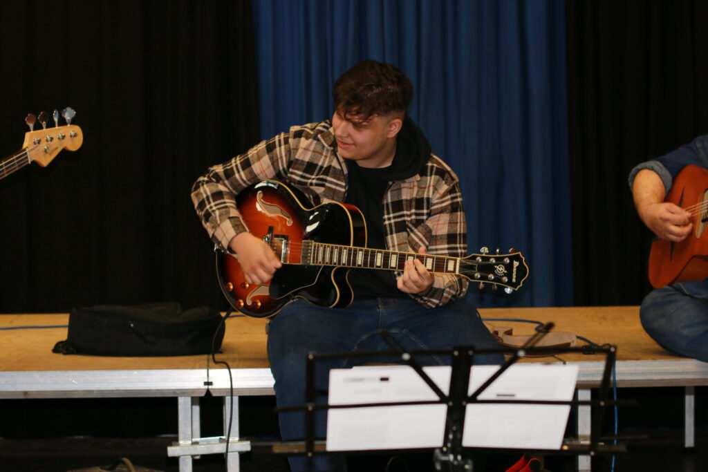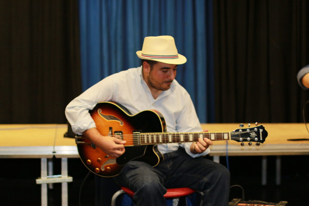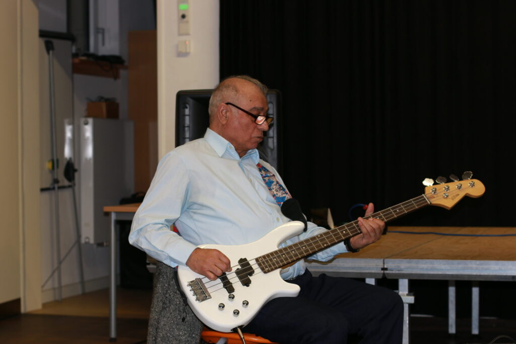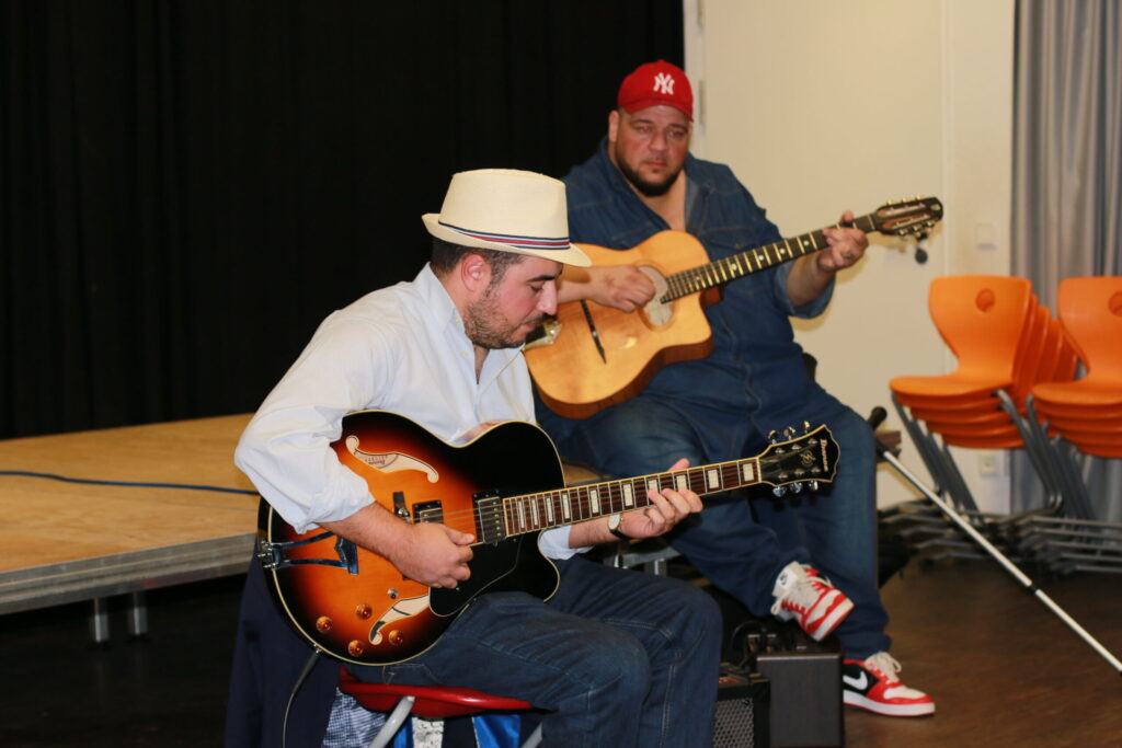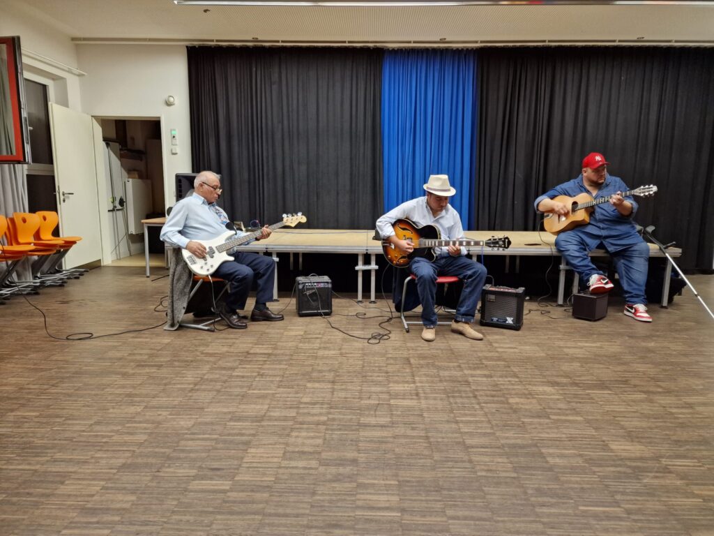 Django Galore in Neumünster Der Verein für Toleranz und Zivilcourage e. V. aus Neumünster mit Zielsetzung der politischen Bildung im Sinne von Solidarität, Weltoffenheit und Völkerverständigung unterstützt auch Integrationsprojekte. Diesmal im Bildungszentrum Vicelinviertel (NMS) am 2. Oktober 2022 ein Konzert: Sinti Swing Meets Folk. Es spielten und sangen:Die Band „Django Galore“. Sie besteht aus den Mitgliedern Carlo Krause (Sologitarre), Eischly Krause (Rhythmusgitarre) sowie dem Vater der beiden Brüder, Arnold Krause (E-Bass) sowie Martin D. Winter: mit seiner einzigartigen Stimme, Gesang und interessanten Erläuterungen entstand eine musikalische Spannung, die Gäste aber auch Künstlern angenehm berührte.
